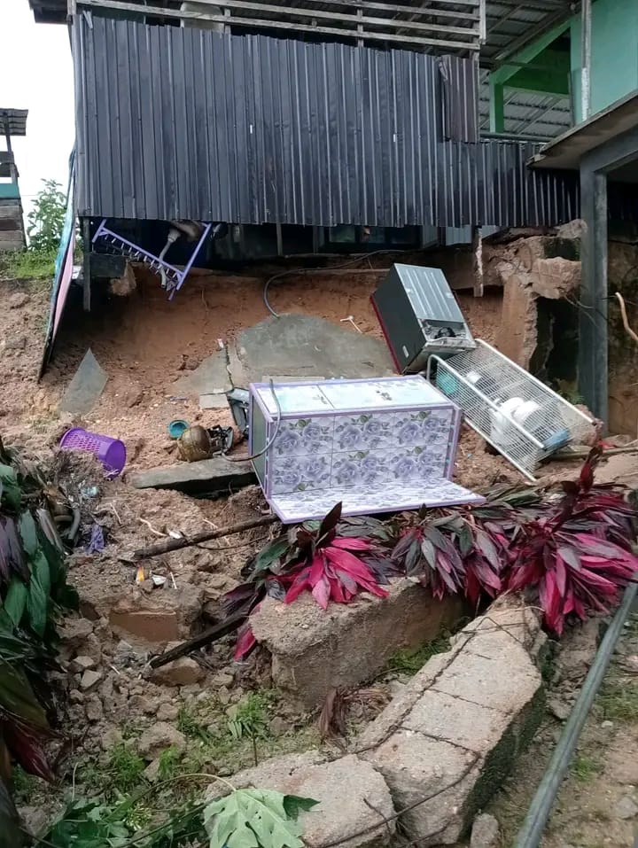 Tanah Longsor tersebut menimpa 1 (satu) Rumah Toko (Ruko) yang berada di RT 01,di Jalan Lintas Luar Simpang 3 arah Tewah-Tumbang Rahuyan. menurut penuturan Bapak. Ade Candra membenarkan dan memberi informasi bahwa Ruko tersebut milik Istrinya, Ny. Natalia, yang pada saat kejadian si Istri tidak berada di Tewah di karenakan sedang mengisi acara Job nyanyi. adapun dampak tanah longsor tersebut pada bangunan Dapur Ruko dengan luas 8-10 Meter yang tedampak sehingga peralatan perabotan dapur antara lain Kulkas,Kompor, dan Lemari Piring ikut rusak karena tertimbun longsor.